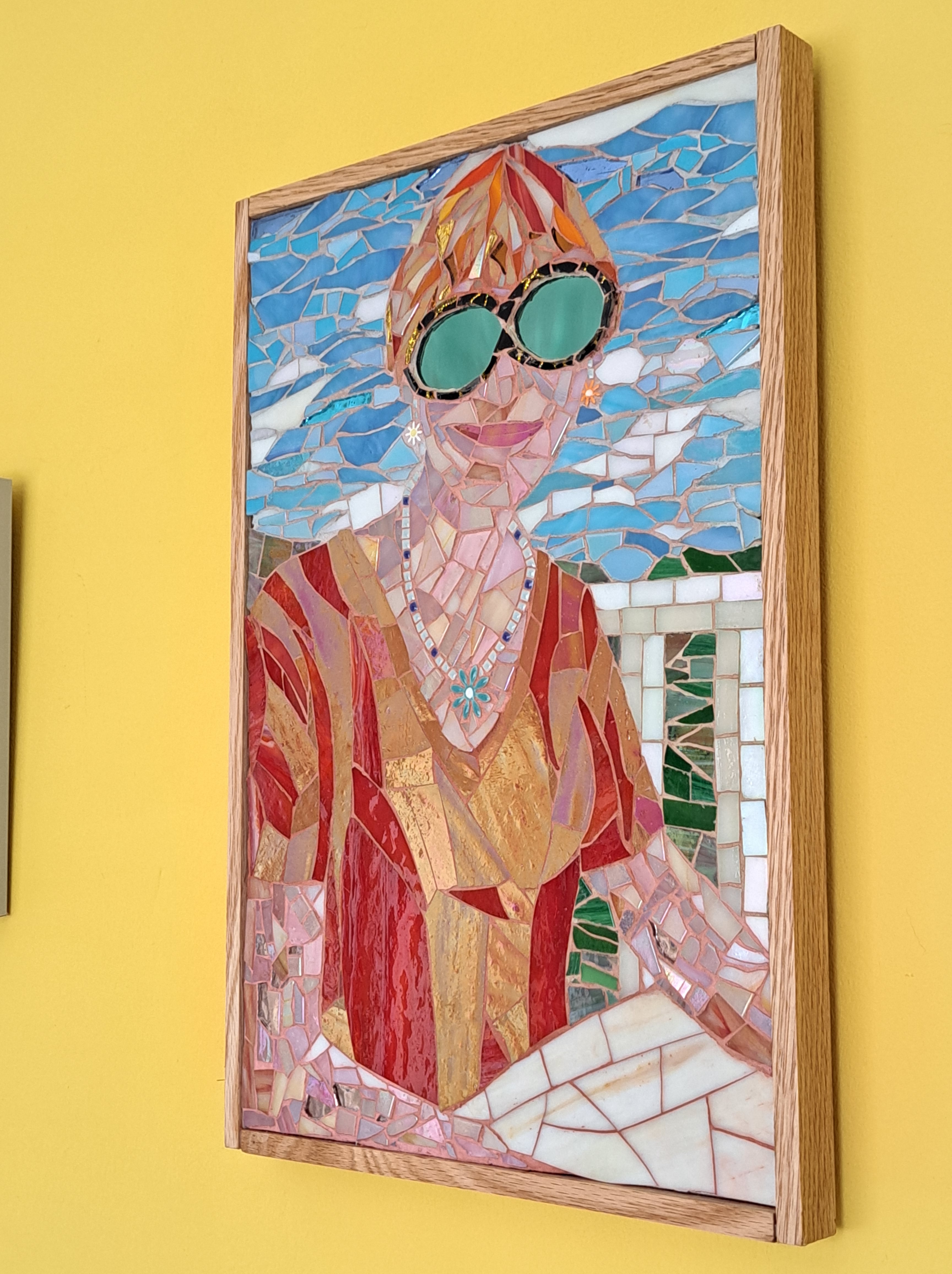 A few years ago, I created ‘Sunspectacled Woman’ (below). She hung on our wall since until I sold it following a talk I gave to a local art group. My wife missed her presence so much that I created another, this time using all my skills acquired over the years to create ‘Shades of Green’. I’m delighted with the finished piece as it’s so much more real and less two dimensional than the original.