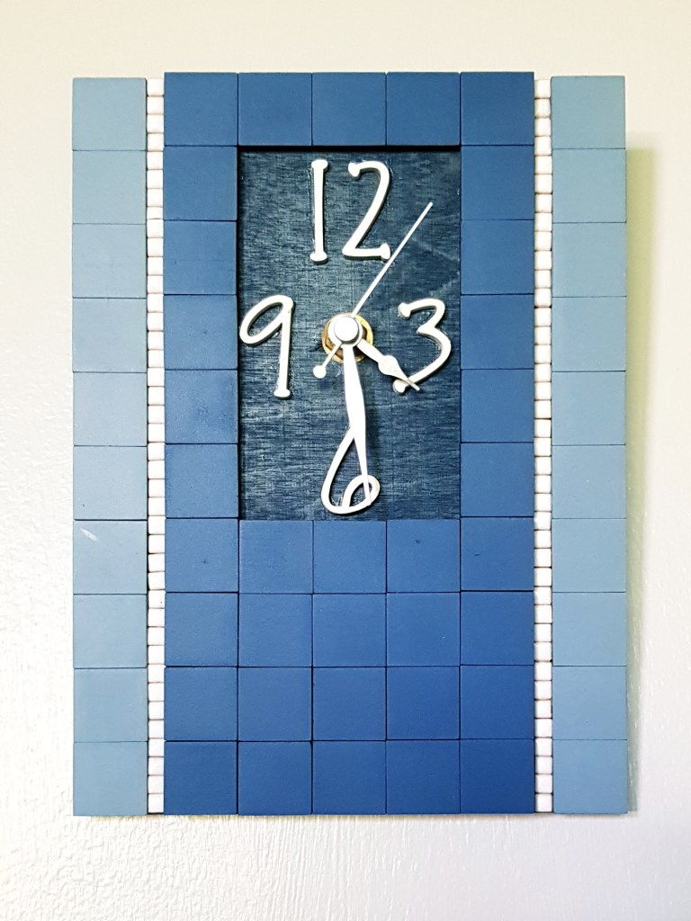 A simple ungrouted, art deco design, Simple Time in Blue has accompanied my wife in her office for many years.
