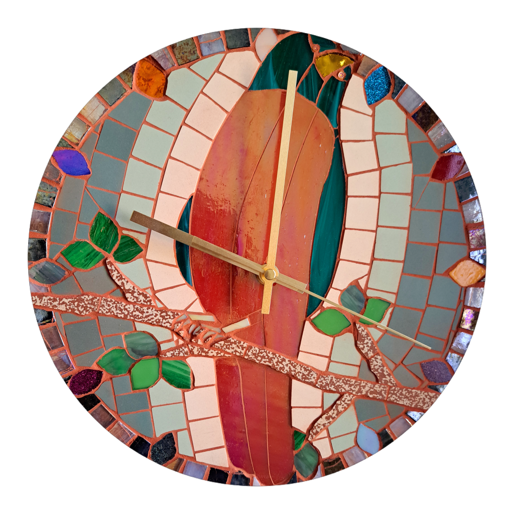 The second clock in the ‘Bird of Time’ series, this clock was commission. At 30cm, it was slightly larger than the original and featured a full tail plus a border, while the bird’s body was a different shade of red.