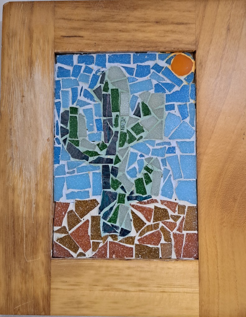 In creating mosaic art, I begin with an idea which I sketch out and then decide how I’m going to create it. I like my work to shine with colours, representing the world through bright images, incorporating myths, nature and everyday life. Early in 2023, I made the decision to focus mainly on internal wall hanging pieces, although I have in the past created external and internal walls, floors and patios.